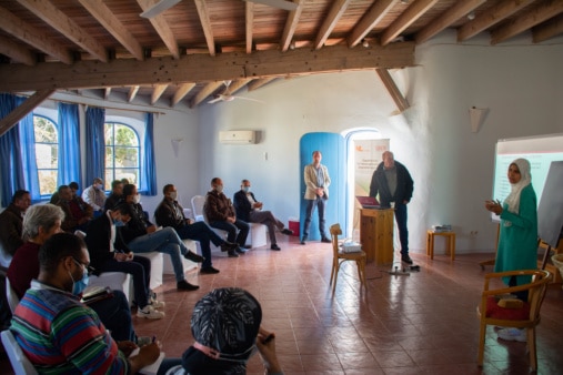 يتمثل أحد أهداف DESALT في تدريب وبناء القدرات للمزارعين وأصحاب المصلحة. ومن ثم، يتم تنظيم دورات تدريبية منتظمة لـ 38 من مهندسي الإرشاد في EBDA من جميع أنحاء مصر. ولذلك الخبراء مستعدون لنشر المعرفة لكل من المزارعين الأعضاء في مصر حتى يصل مشروع De-salt بشكل خاص إلى المزارعين المتأثرين بالملوحة المتوسطة إلى العالية والذين يحتاجون إلى حلول ناجحة لزراعة لا تضر بالتربة والبيئة.