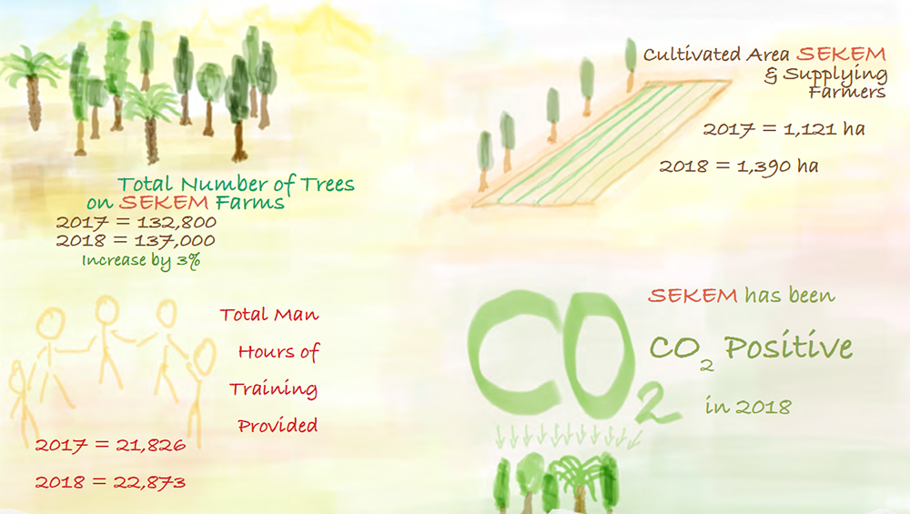في عام 2018، أعطت سيكم الأولوية لهذين الهدفين من الرؤية: في إطار حملة “يلا نزرع المستقبل”، قامت جميع مؤسسات سيكم بالنشاطات التي تعزز الوعي بالزراعة المستدامة والإنتاج الغذائي، وتقديم المنتجات الغذائية العضوية للموظفين بسعر التكلفة كما شاركت سيكم في العديد من المشاريع الدولية التي تسعى إلى تعزيز الزراعة العضوية في مصر. بالإضافة إلى ذلك، تم افتتاح أول كلية للزراعة العضوية في مصر في جامعة هليوبوليس للتنمية المستدامة.