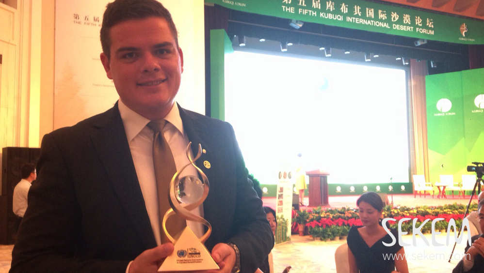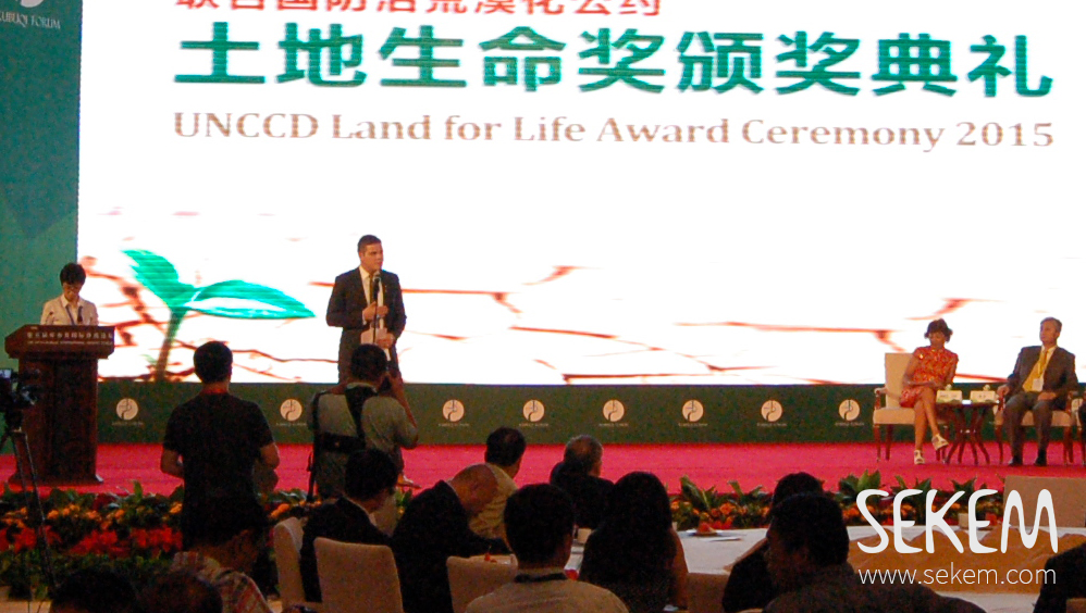 „Wir sind von dem Erfolg Ihrer Organisation bei der Wiederbelebung von Trockengebieten durch biologisch-dynamische Anbaumethoden, Ihrem kontinuierlichen Beitrag zur nachhaltigen Landwirtschaft sowie der Unterstützung menschlicher Entwicklung im Allgemeinen sehr beeindruckt“, so die Jury gegenüber SEKEM. Der „Land for Life Award“ wurde am 28. Juli im Rahmen des fünften „Kubuqi International Desert Forum“ in der Inneren Mongolei verliehen. Maximilian Abouleish-Boes, Leiter der Abteilung für nachhaltige Entwicklung in SEKEM, nahm die Auszeichnung stellvertretend für die ganze Initiative entgegen. Während seiner Rede betonte er, wie wichtig der Award für SEKEM sei um unter anderem zu zeigen, dass die nachhaltige Entwicklung der Erde bei einem verantwortlichen und behutsamen Umgang mit der Natur beginnt. „Wir brauchen fruchtbares Land nicht nur aus ökologischen Gründen, sondern auch für die Entwicklung von sozialem und kulturellen Leben und für eine faire Wirtschaft“, so der SEKEM-Repräsentant bei der Verleihungszeremonie in China.