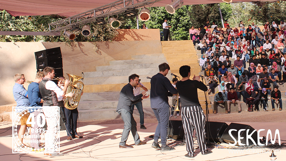 At show time, the golden rays of the Egyptian autumn sun were occupying the stage and made the already shining Brass instruments glow even brighter. The band announced that their concert at the “Space of Culture” is their premiere in Egypt, sponsored among others by the Austrian Cultural Forum in Cairo. The joyful music, was quickly conveyed to the audience – with cheerful clapping and great enthusiasm they enjoyed the performance. The band presented various songs, such as folkloric Austrian rhythms, but also East European and even Latin American styles.