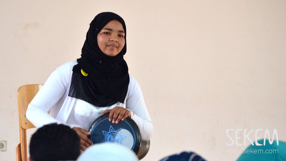Apart from the internal activities, SEKEM invited a female Egyptian carpenter and her husband from Cairo to encourage the students and tell them about her unique career. Asmaa Megahed used to watch her husband Medhat in his carpentry workshop and found out that she likes to deal with wood as well. “I believe in my existence as a human being, who is able to do any job”, Asmaa says. “Maybe it is still strange in Egypt to see a woman working as a carpenter, but we are able to change the society by recalling our human rights”. Her husband Medhat was the main motivation for Asmaa to start her career, as he encouraged and taught her. “Our wives never have holidays from raising our children or doing the daily housework. Therefore, it is important that we, the men, support them in doing what they strive for”, Medhat emphasized during his speech on stage. “I am really proud of Asmaa, my successful carpenter wife!”