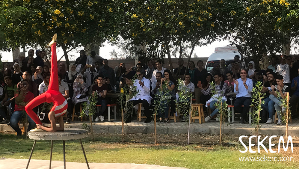 SEKEM School as well as Heliopolis University, both like to provide their pupils and students with an energetic and exciting educational experience. The artistic program of the “Space of Culture”, an event venue at Heliopolis University campus, is part of that approach and recently began its new season with the start of the new scholar year. “It is wonderful to begin our year with art!” expressed Yvonne Floride, Fine Arts Instructor who passed by each office to personally invite her colleagues to participate in the interactive events.