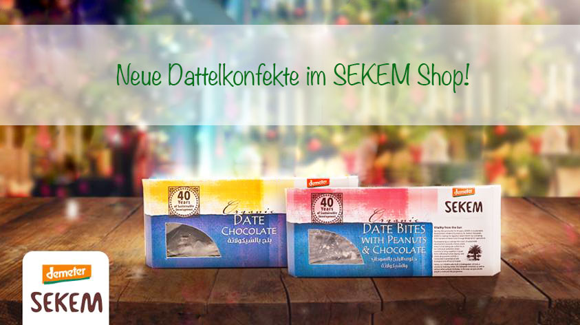 The SEKEM Shop in Germany now offers two new kinds of date sweets: Dates with chocolate and date confectionary with peanuts and chocolate. The vegan treats are made without any additional sugar and are a delicious and at the same time healthy snack.